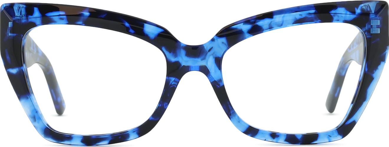 - The blue colour of the frame perfectly matches a cool skin tone and light brown, black or light blonde hair.