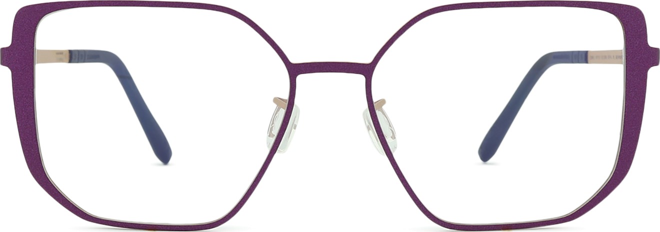 - The purple colour of the frame perfectly matches a cool skin tone and black, grey, white or light blonde hair.