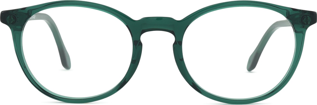 - The green colour of the frame perfectly matches a cool skin tone and dark brown, black or red hair.