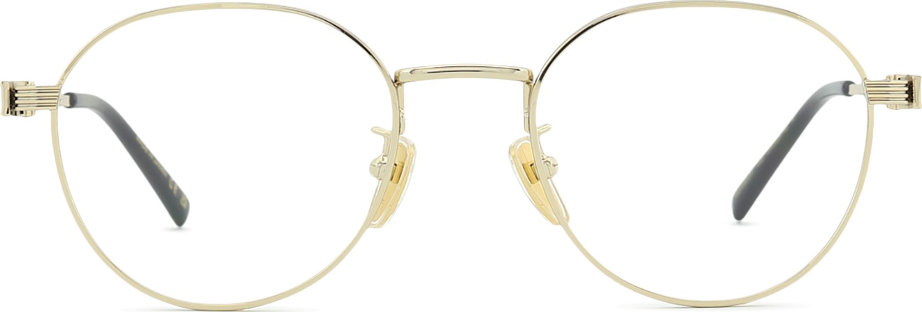 • The gold colour of the frame perfectly matches a warm skin tone and dark brown hair.