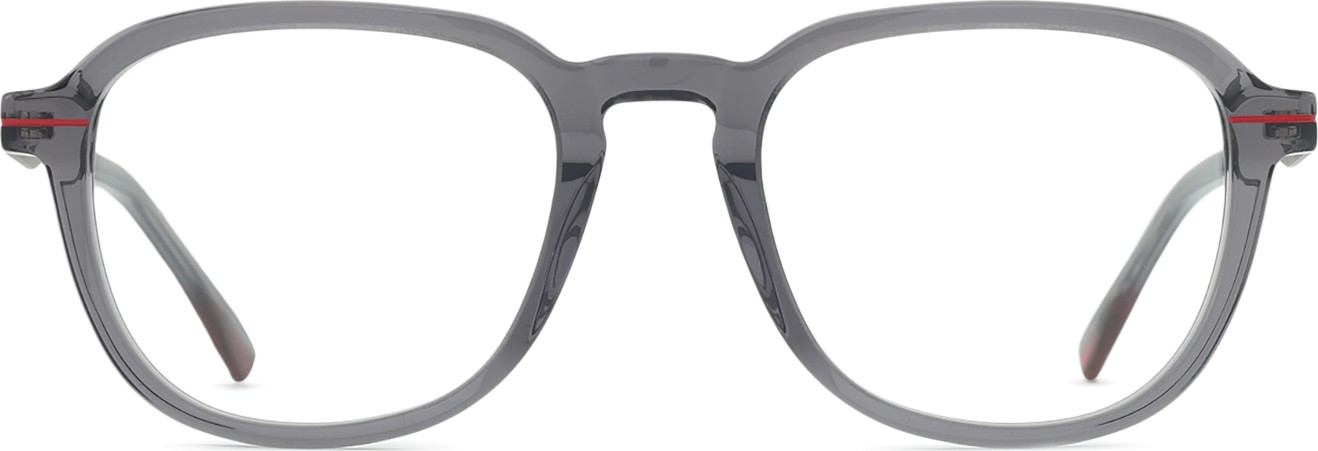 The grey colour of the frame perfectly matches a cool skin tone and red, grey,