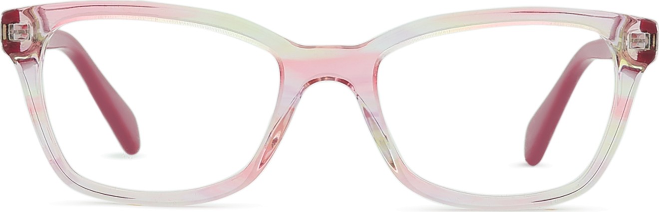 - The pink colour of the frame perfectly matches a cool skin tone and light brown or light blonde hair.